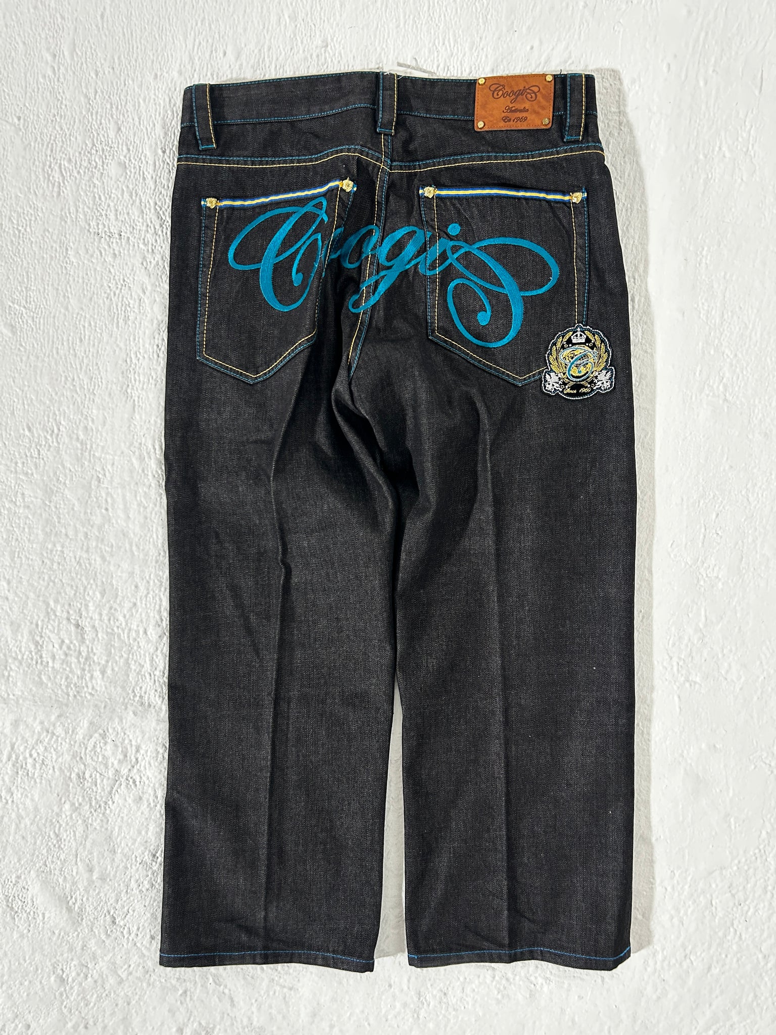 Vintage Coogi Black & Blue Denim Jeans Sz. 36 x 34